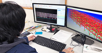 専用CAD・汎用CADの経験、鉄骨建築の知識がなくても心配ありません。入社後に初めて鉄骨建築を知った社員も製図で活躍しています。